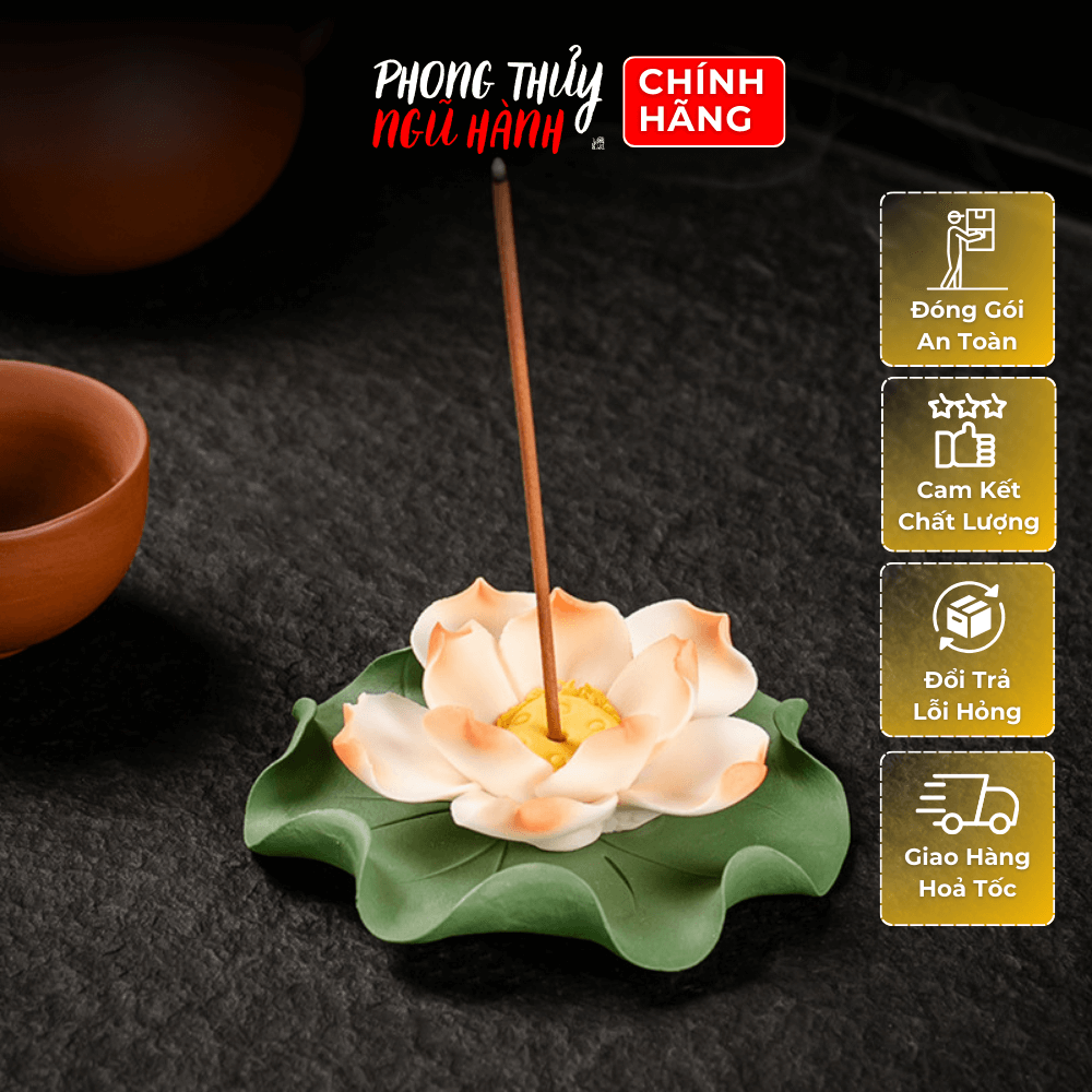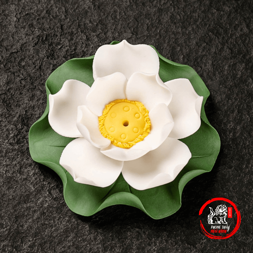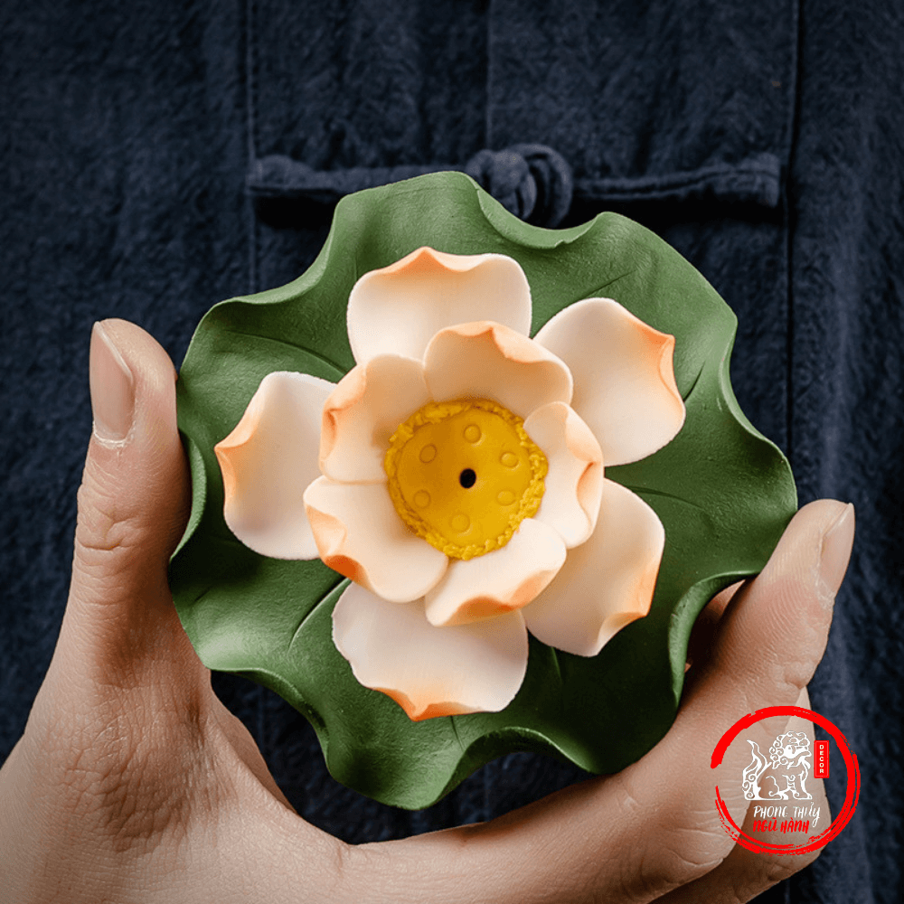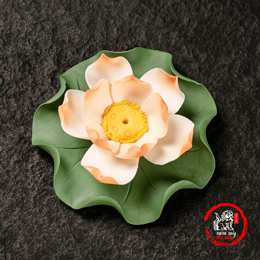 Đế Cắm Nhang Hình Bông Hoa Sen Kèm Lá Sen Gốm Sứ - Hoa Sen Sứ Thả Bể Nước Minh Đường